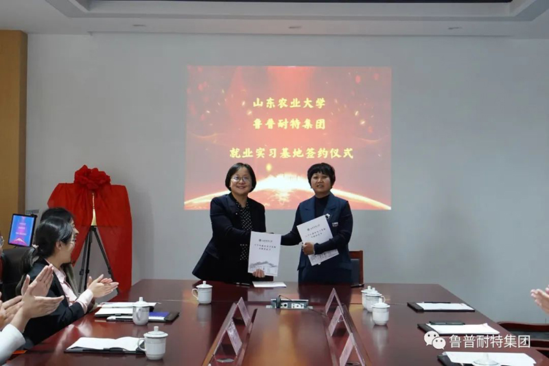 5月13日下午,山东农业大学访企拓岗暨就业实习基地揭牌活动在鲁普耐特集团成功完成。山东农业大学党委、组织部部长岳远彬,学工处副处长姜芳,外国语学院院长翟红华,外国语学院党委孙慧敏等学校领导以及鲁普耐特集团董事长沈明、总裁邱延平、常务副总左龙峰、营销副总李丽、财务副总石晓赟等集团高管出席本次活动,活动由集团人力资源部经理于翠翠主持。
