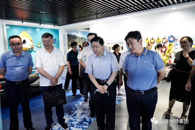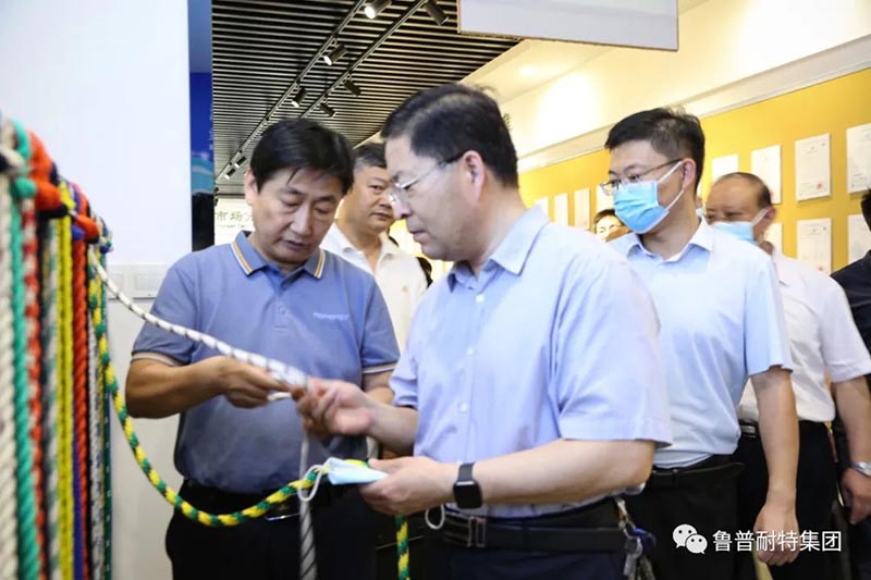 首先,贾玉亮副部长一行参观了集团绳网文化科技馆。详细了解了集团运营情况、企业的发展历程、文化与品牌建设、企业用工尤其是高校毕业生吸纳情况以及集团在高性能绳(缆)网产品的产业化应用推广与上下游产业链打造等相关情况。调研组一行人对鲁普耐特集团经过二十年的不断发展所取得的成绩表示充分的肯定,并对集团在绳网技术人才培养、绳网技术创新发展等方面做出的贡献给予了高度的赞扬。